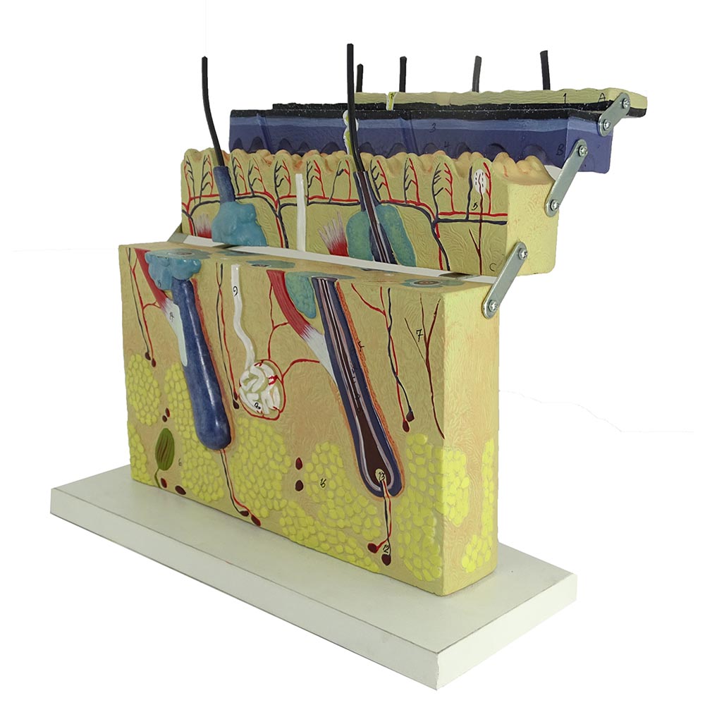 این مولاژ به دانشجویان پزشکی کمک میکند تا با ساختارهای مختلف پوست و مو آشنا شوند و بتوانند تفاوتهای موجود بین لایههای مختلف را به خوبی درک کنند.
